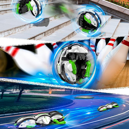 Puede girar y rotar 360 grados rápidamente y realizar volteretas. Con un solo botón en el control remoto, puedes cambiar fácilmente entre el modo carro y el modo bola acrobática.
