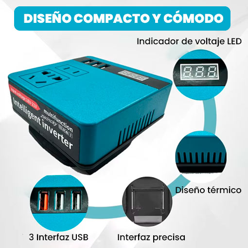 Una característica especial de este inversor es su compatibilidad con baterías Makita.