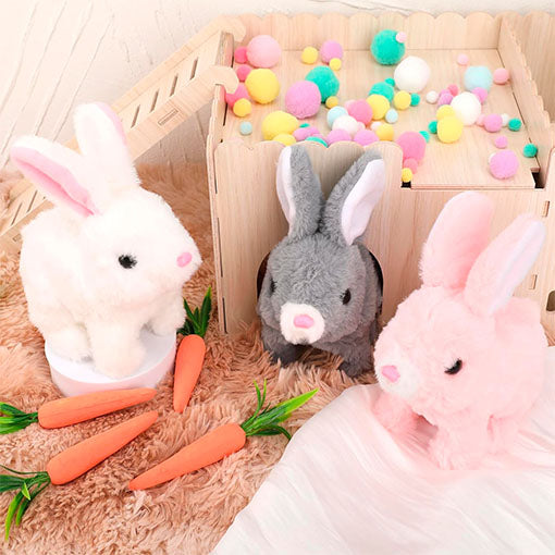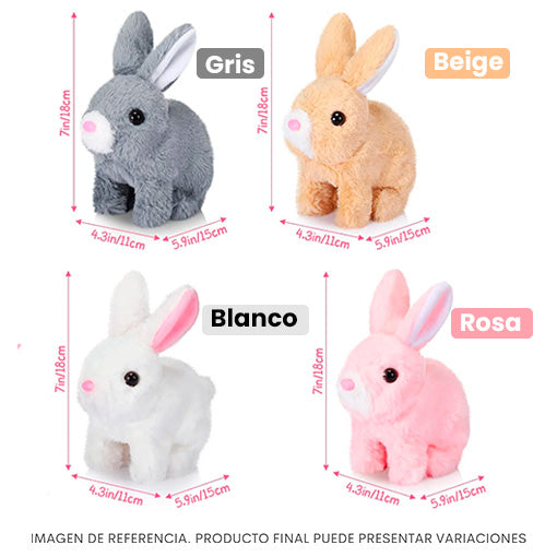 El peluche Conejito Saltarín es el regalo ideal para Navidad, cumpleaños, Pascua o cualquier fiesta. Disponible en varios colores (Gris, Beige, Blanco y Rosado), este conejito hará realidad los sueños de cualquier niño sin las complicaciones de tener una mascota real.