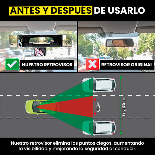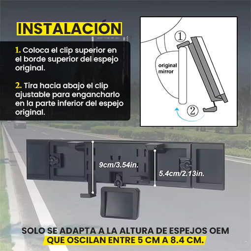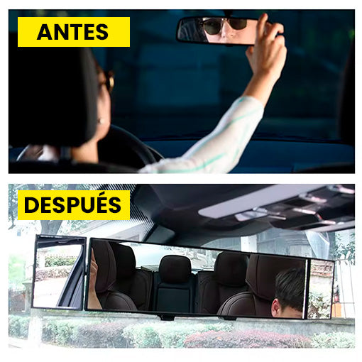 Este retrovisor te brinda una visión amplia y panorámica, eliminando los puntos ciegos, aumentando la seguridad al conducir y previniendo accidentes, especialmente a altas velocidades en autopistas concurridas.
